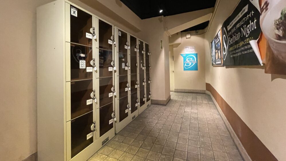 会場内にはロッカー、クローク等はありませんが、会場ビル内や道中の地下街「アゼリア」などにコインロッカーがあります。