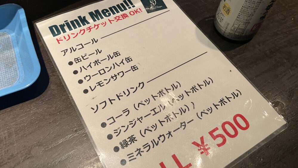 ドリンクは缶のアルコール類と、ペットボトルのソフトドリンク類の8種類でした。