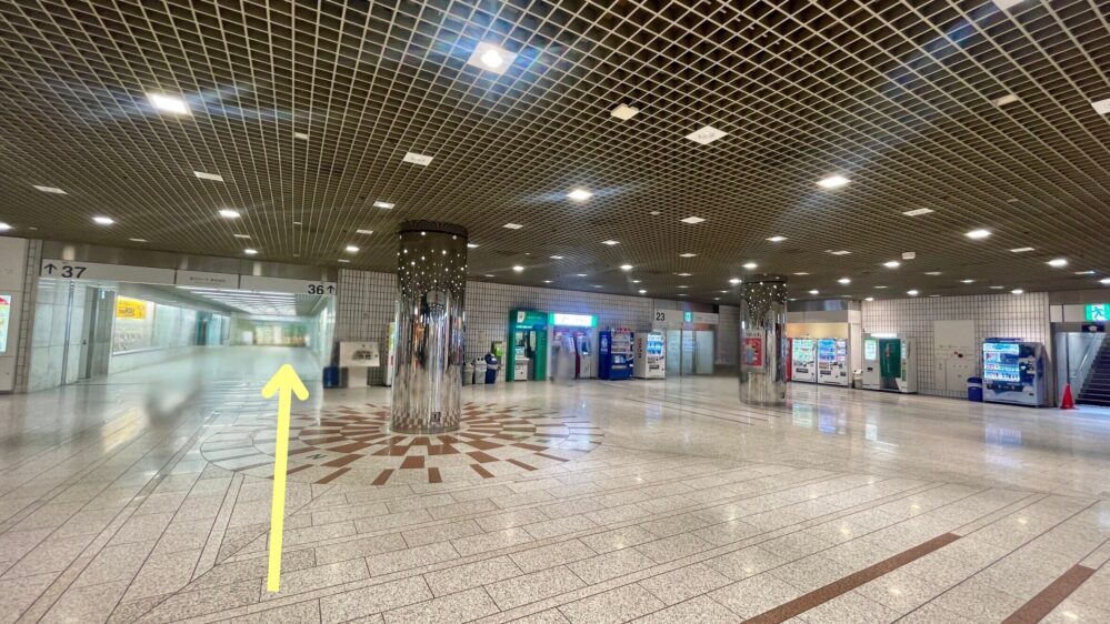 川崎駅東口から駅直結の地下街「川崎アゼリア」へ。南広場から36番出口に向かいます。