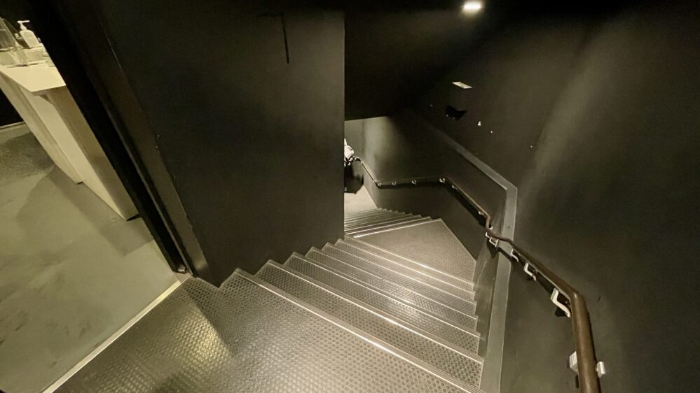 受付を終えて地下への階段をくだりライブフロアに向かいます。