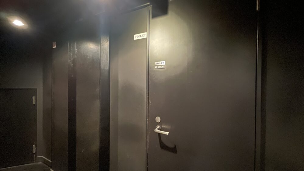 上手側の扉を開けると、フロアとは暗幕で仕切られており、一度後方へまわる必要があります。