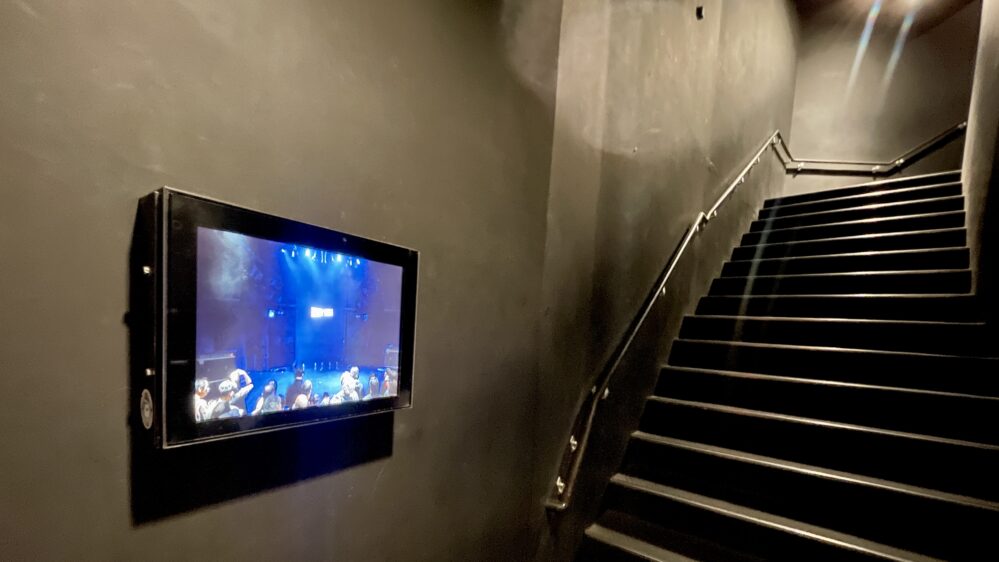 ライブフロアの入り口にはモニターが設置されており、フロアの様子が確認できます。