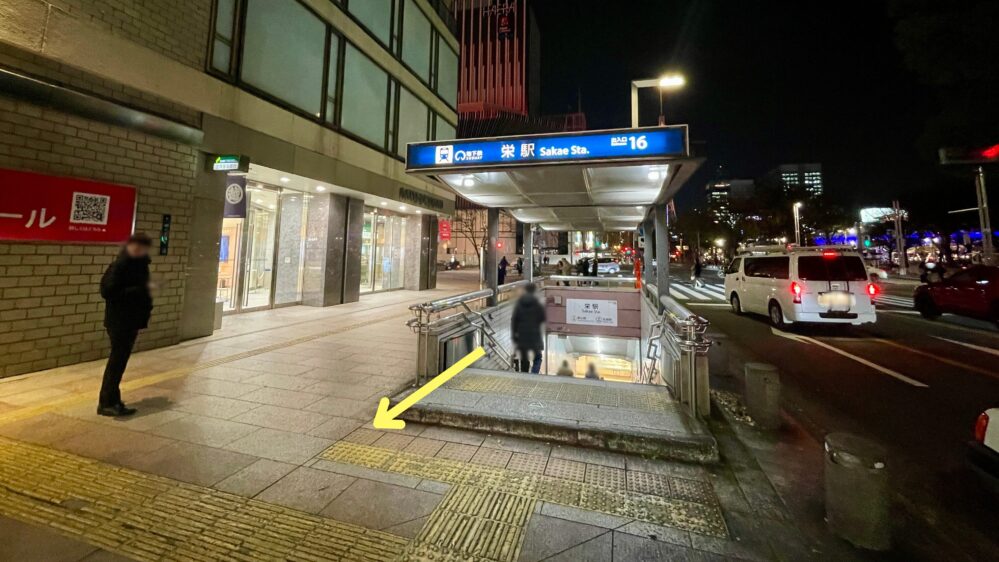 栄駅の最寄り出口は「16番出口」です。地下街の案内表示に従って地上へ上がってください。