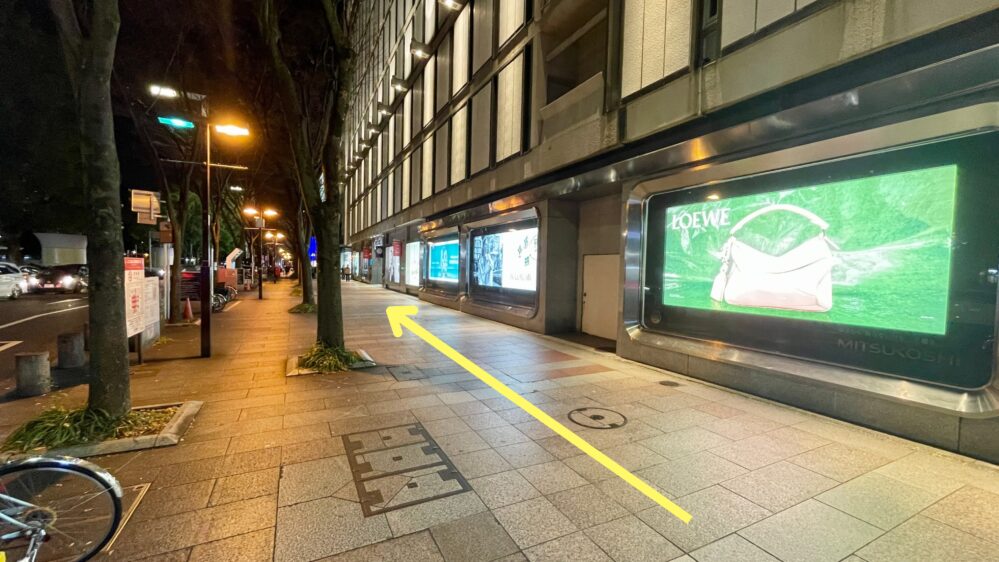 地上に出たら、そのまま直進します(右手に三越、左手に大通りがある状態です)。