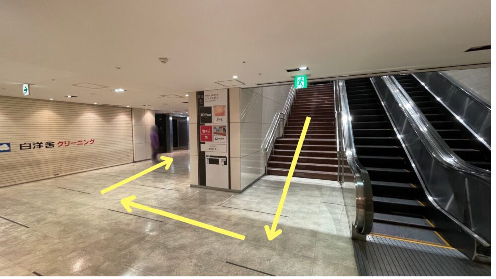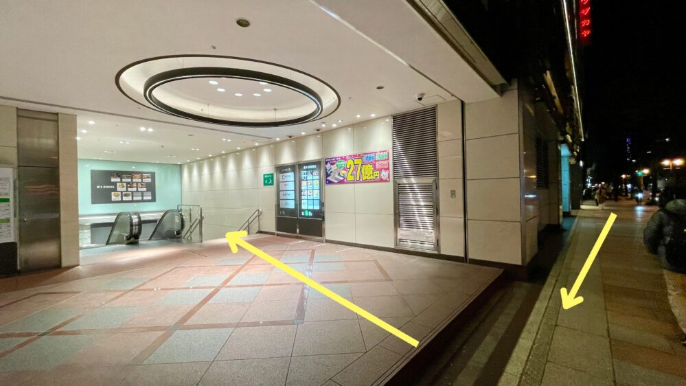 建物の入り口から入り、エスカレーターまたはエレベーターで地下1階へ降ります。