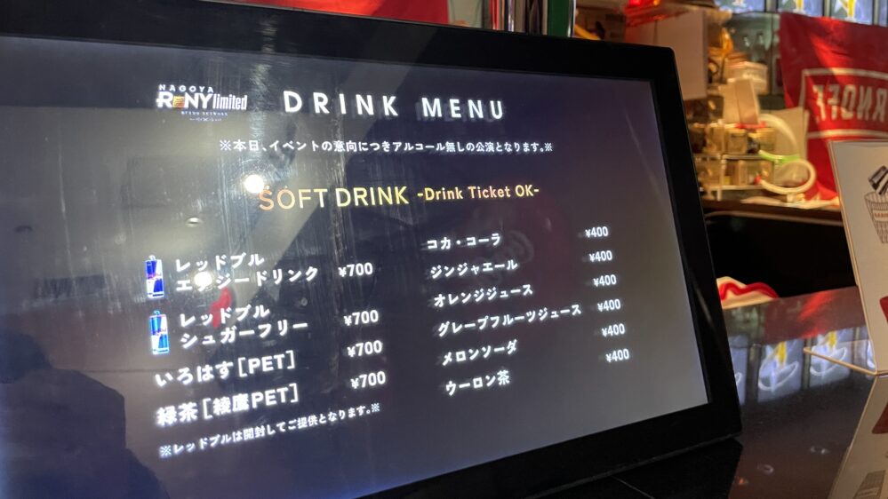 ③再入場の可否(再入場時にドリンク代徴収含む)はその日のイベントによって異なります。が、若干変わります。