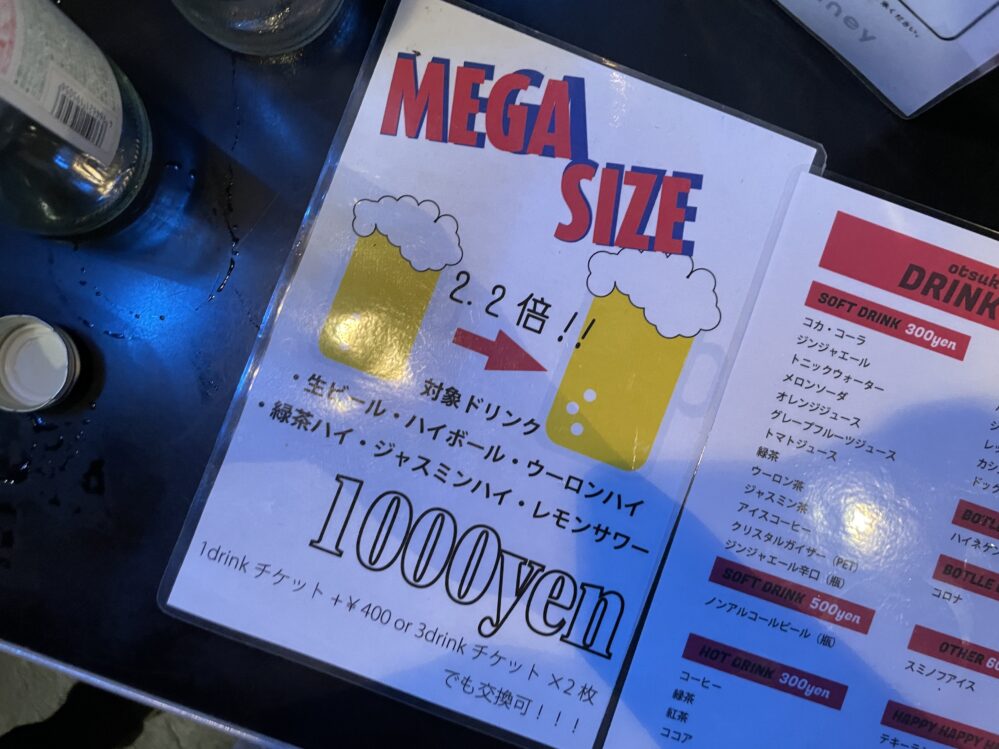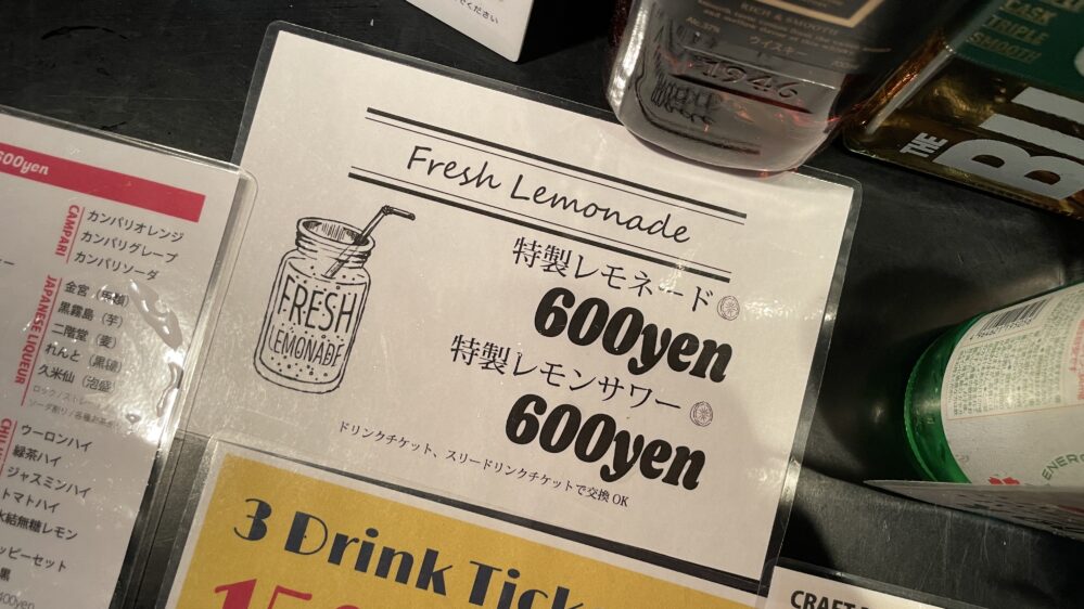 ドリンクチケット1枚プラス400円、またはチケット2枚でも交換可能です。