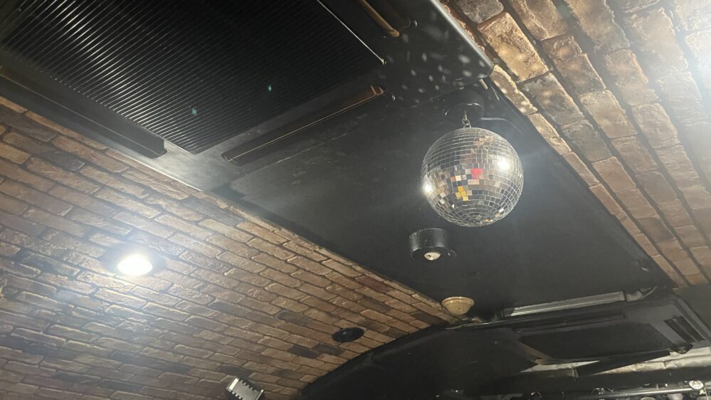 天井には小さなミラーボールが1つ備え付けられています。