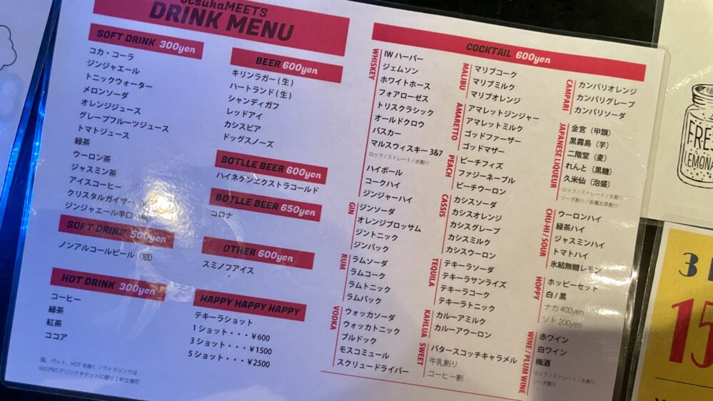 大塚MEETSのドリンク情報