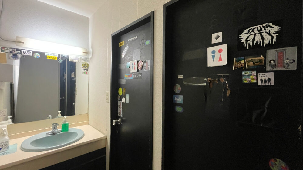 会場内のトイレはフロア後方にあります。