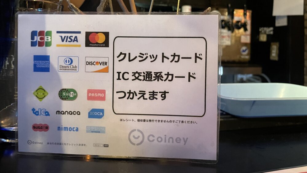 バーカウンターでの追加注文の際は、クレジットカード、交通系ICでのキャッシュレス決済が可能です。