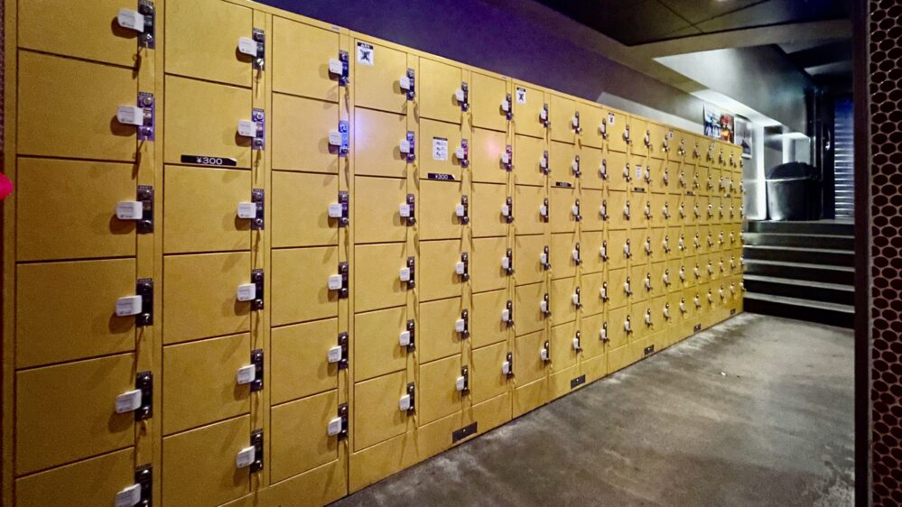 O-Crestでは、会場フロア後方にコインロッカーが設置されています。