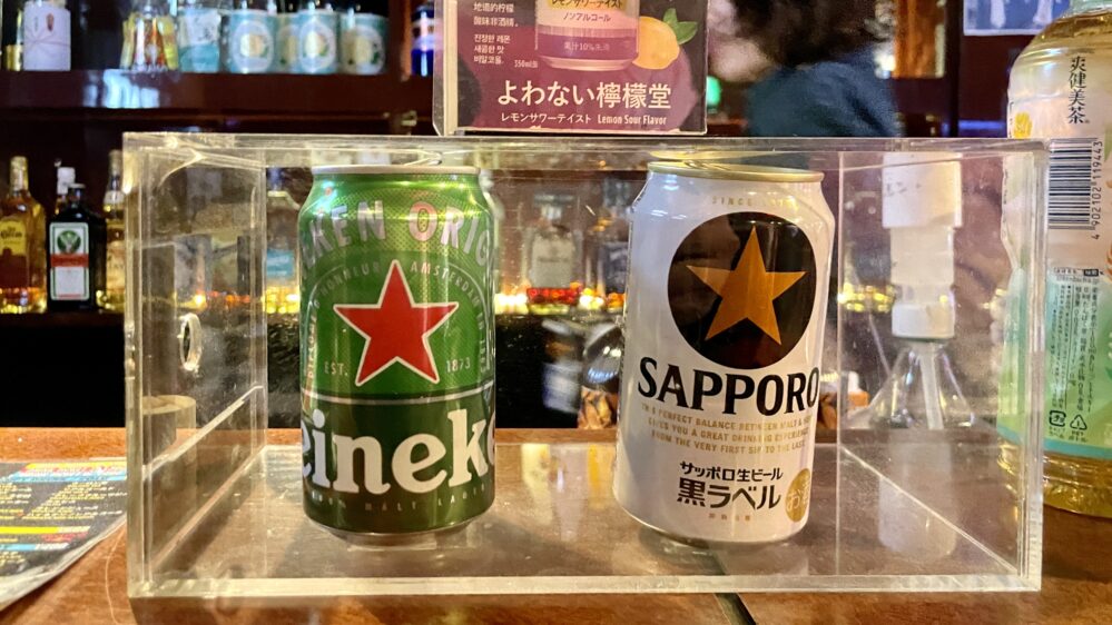 ハイネケン・黒ラベル、コカ・コーラゼロなどは缶での提供となります。