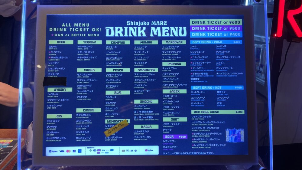 新宿MARZのドリンク情報
