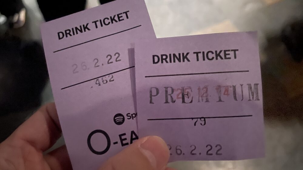 入場時に受付にてSpotifyアプリを起動して画面を提示することで、追加のドリンクチケットがもらえます。