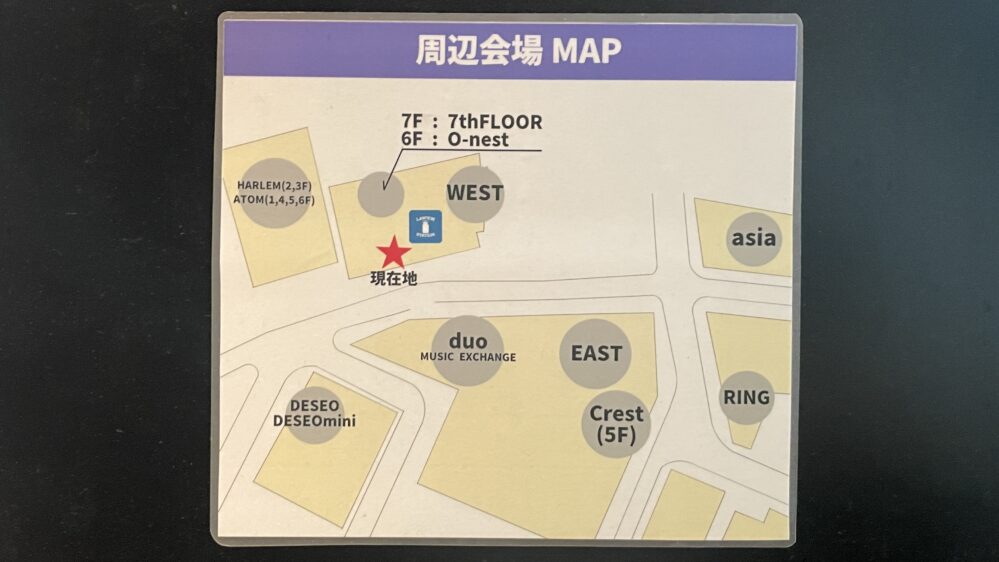 会場の入り口周辺は、O-WESTの入場待ちの人などで溢れ、初めての場合はわかりづらいと思われます。