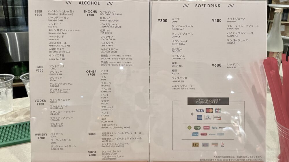 - 入場時ドリンク代:600円(交通系IC、一部電子マネー可)
