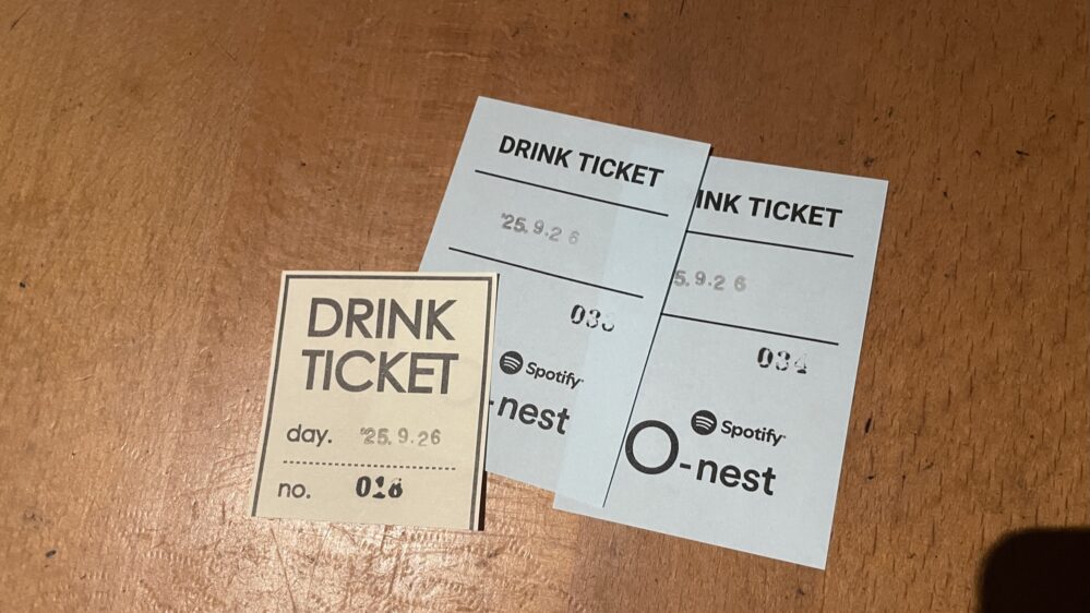 入場時に受付にてSpotifyアプリを起動して画面を提示することで、追加のドリンクチケットがもらえます。