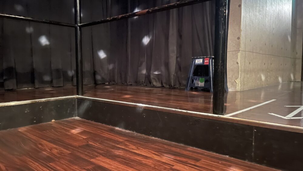 下手(ステージ向かって左)側は、機材・関係者エリアとなっている場合があります。